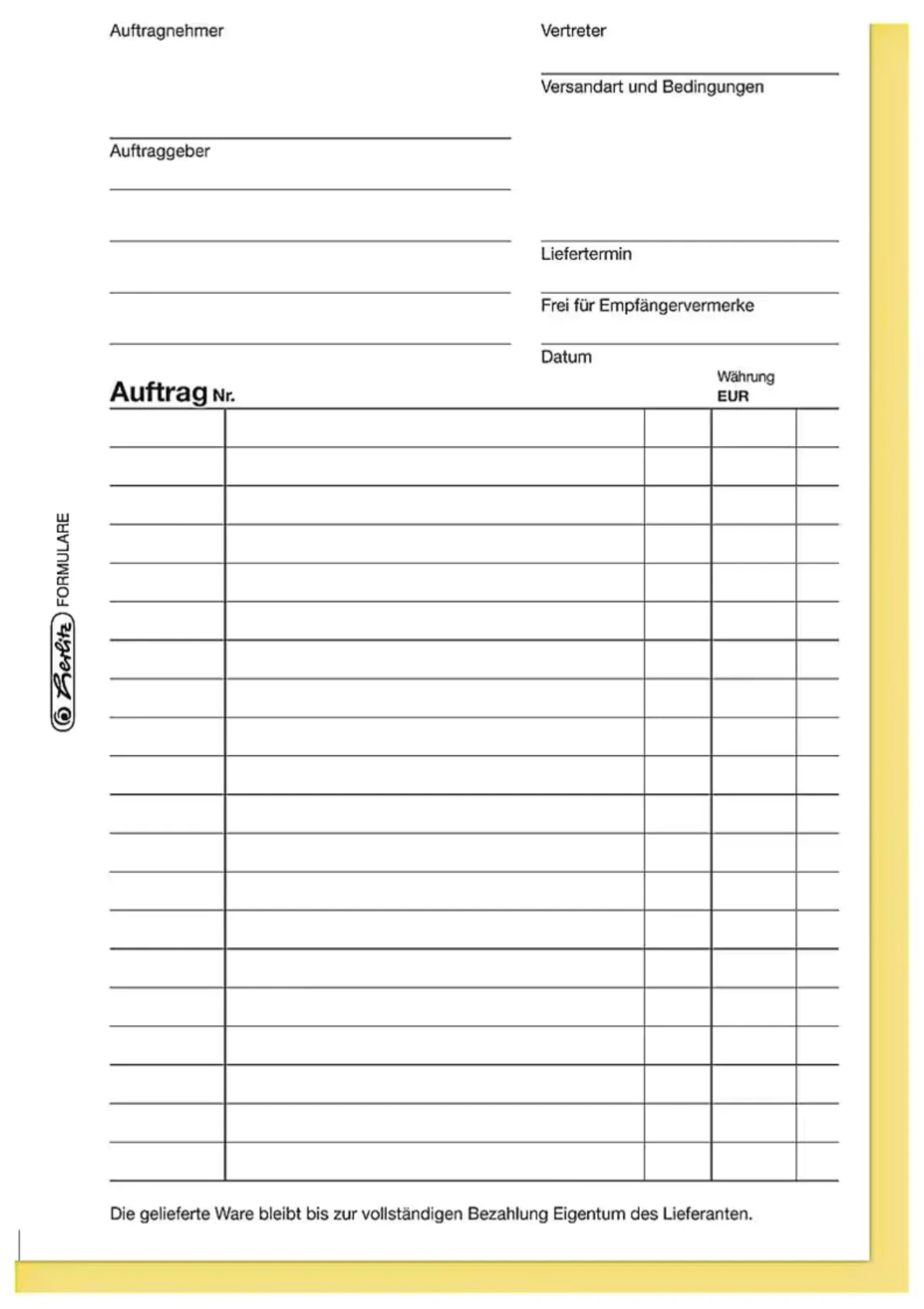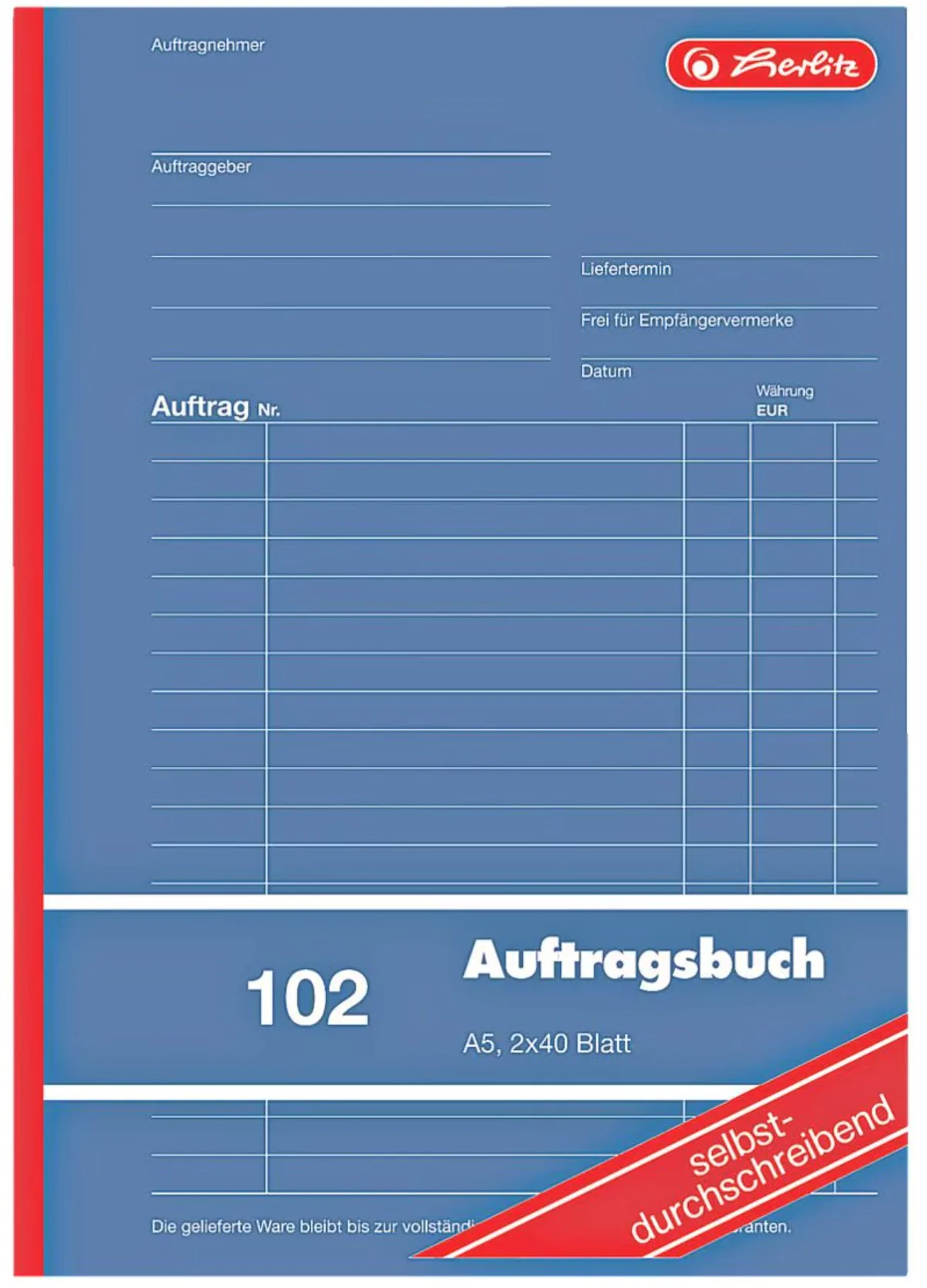 Formularblock Auftrag A5 2x 40 Blatt selbstdurchschreibend Herlitz (Nr. 102)
