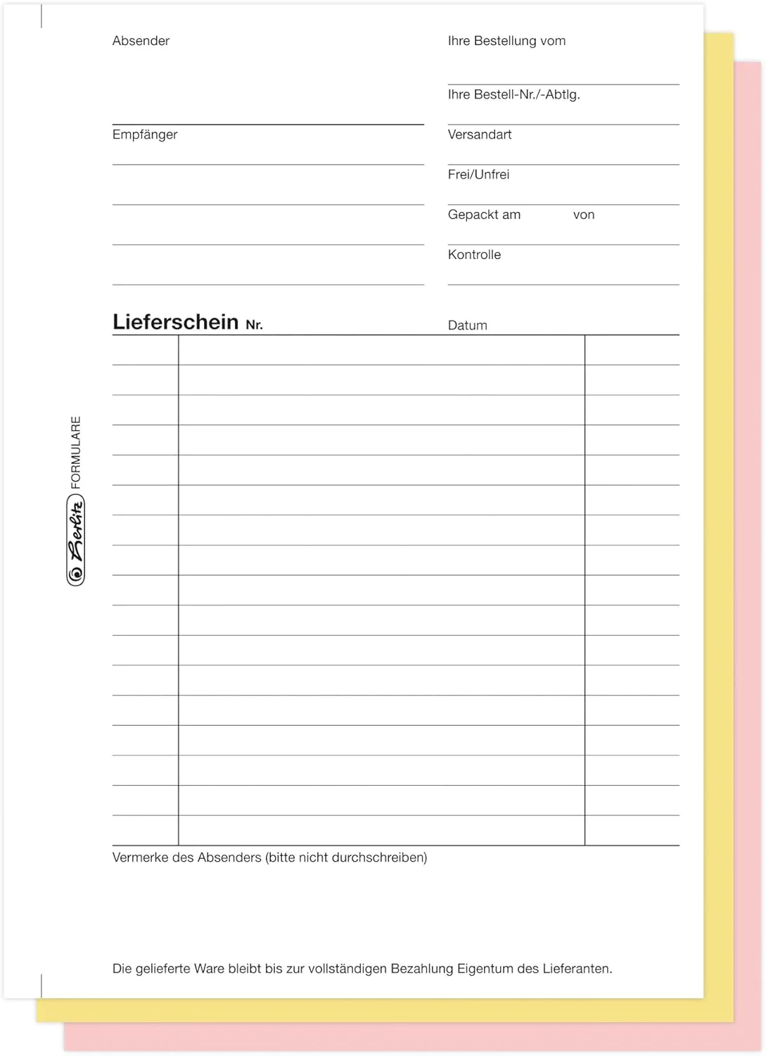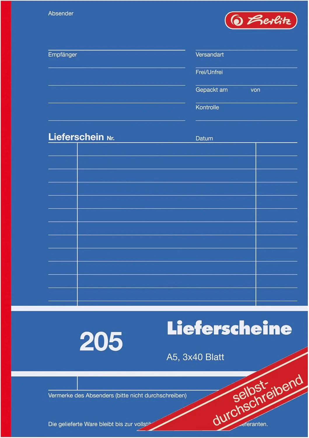 Produktinformationen "Formularblock Lieferschein A5 3x 40 B. Herlitz selbstdurchschreibend (Nr.205)"