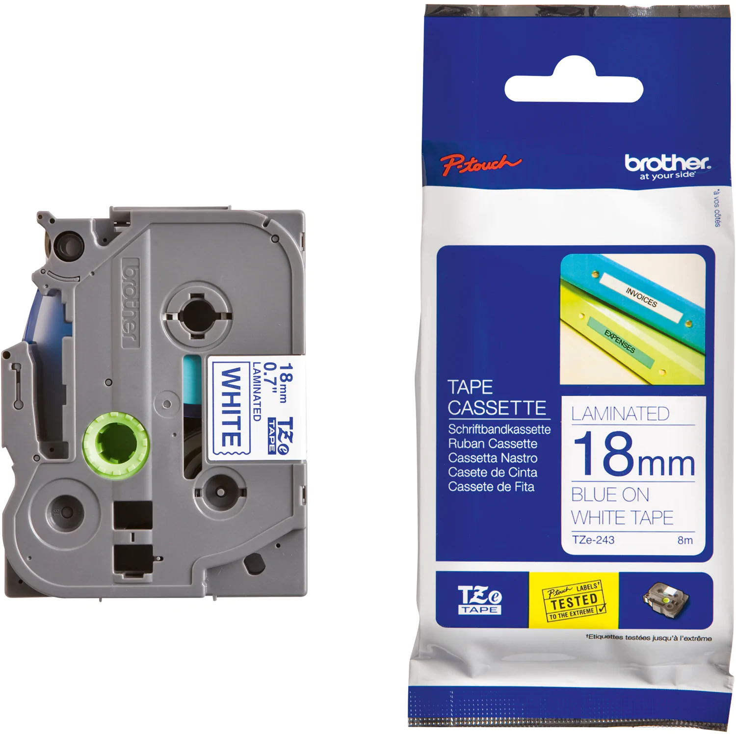 Original Beschriftungsband Brother TZe-243, 6mm x 8m blau auf weiß